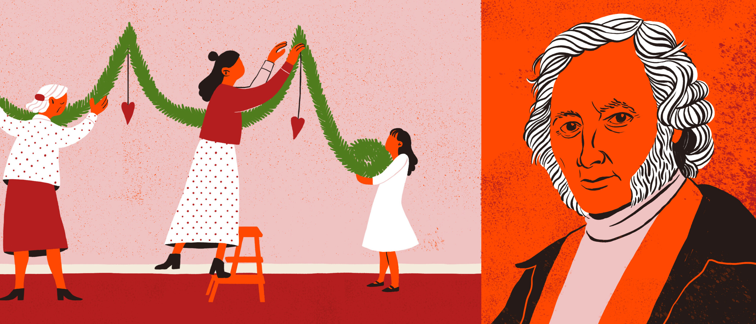 I billedet af salmebogen kan du gå på opdagelse i Ingemanns julesalme. Hold musen over, eller klik på de markerede ord, for at læse en uddybning.