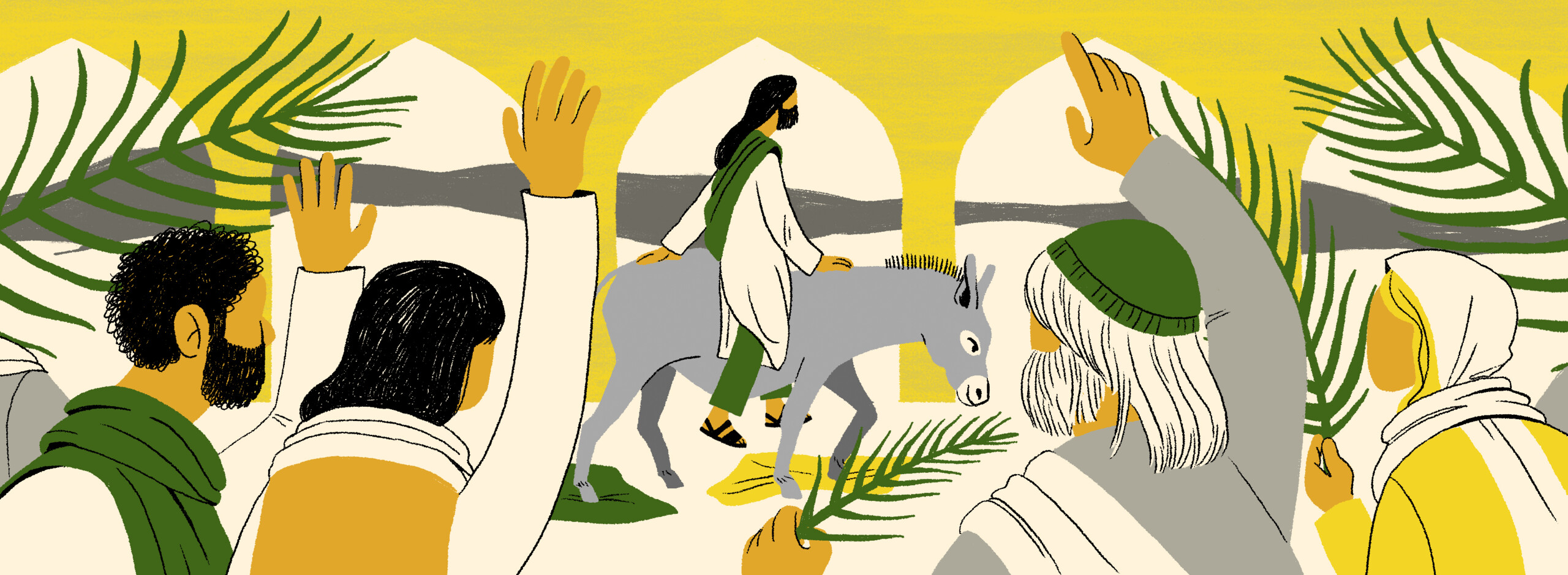 Jesus rider ind i Jerusalem på et æsel, men selvom transportmidlet er ydmygt, kan man langt fra sige det samme om den modtagelse, der venter ham: Da Jesus rider ind i byen, tager folk imod ham med jubelråb og store forventinger.