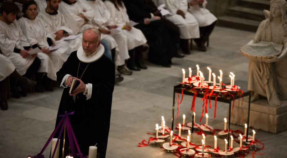 at Københavns Domkirke i aftes blev lyst op af levende lys. Der afviklede de