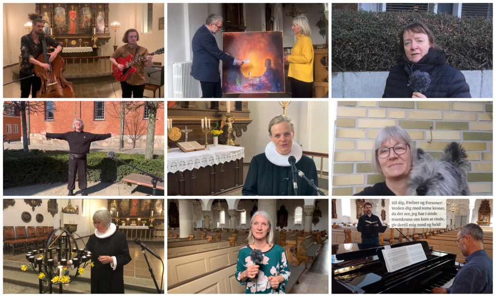 Det er blandt andet blevet til gudstjenester på internettet, videoer med babysalmesang, drive in-gudstjeneste og take away-påske.