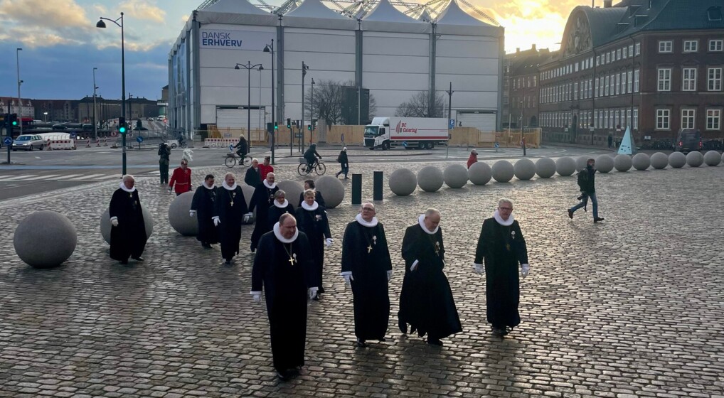 Biskopperne på vej over slotspladsen ved Christiansborg til nytårskur hos H.M. Kongen. (foto: Kristian Danholm)