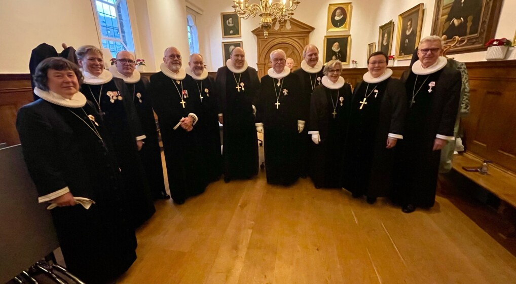 De 11 biskopper fra Danmark og Grønland inden afgangen til Christiansborg for at hilse på Kongen. (foto: Kristian Danholm)