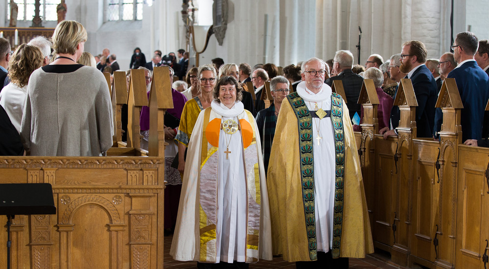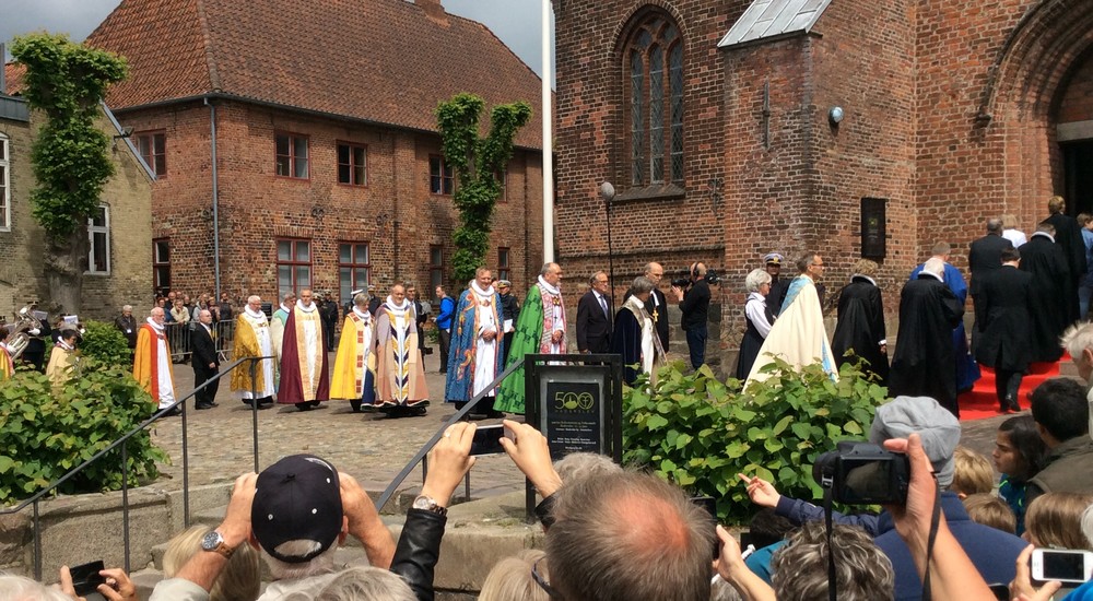Dronning, regering, folketing og andre trossamfund var med, da folkekirken pinsesøndag fejrede 500-året for reformationen i Haderslev Domkirke.