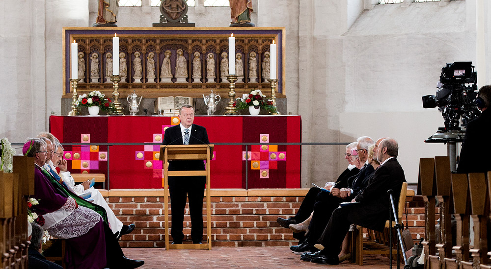 Som afslutning på højtideligheden i kirken talte statsminister Lars Løkke Rasmussen (V).