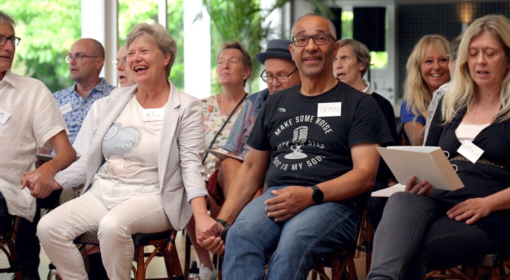 ’Demenskoret’ på DR viser, hvordan musik og fællesskab kan skabe små, dyrebare øjeblikke i et liv og en hverdag, som ellers er trist og udsigtsløs. I folkekirken er der flere demenskor på vej. Foto: Nordisk Film TV/DR Presse, 'Demenskoret'
