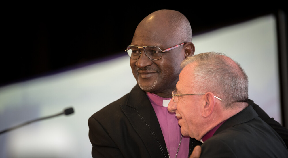 Ærkebiskop Musa Panti Filibus (tv.) fra den lutheranske kirke i Nigeria blev valgt som præsident for Det Lutherske Verdensforbund ved dets tolvte generalforsamling.