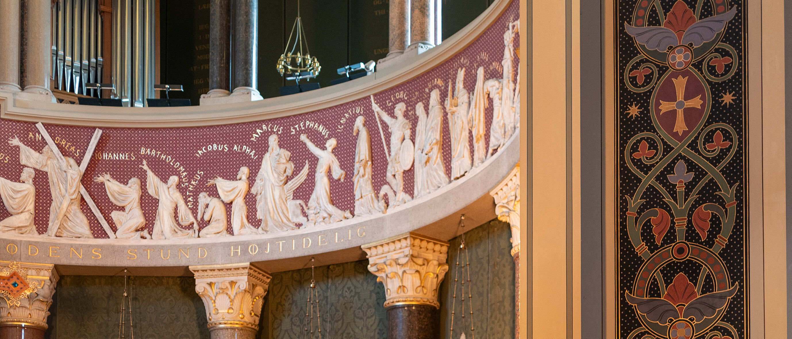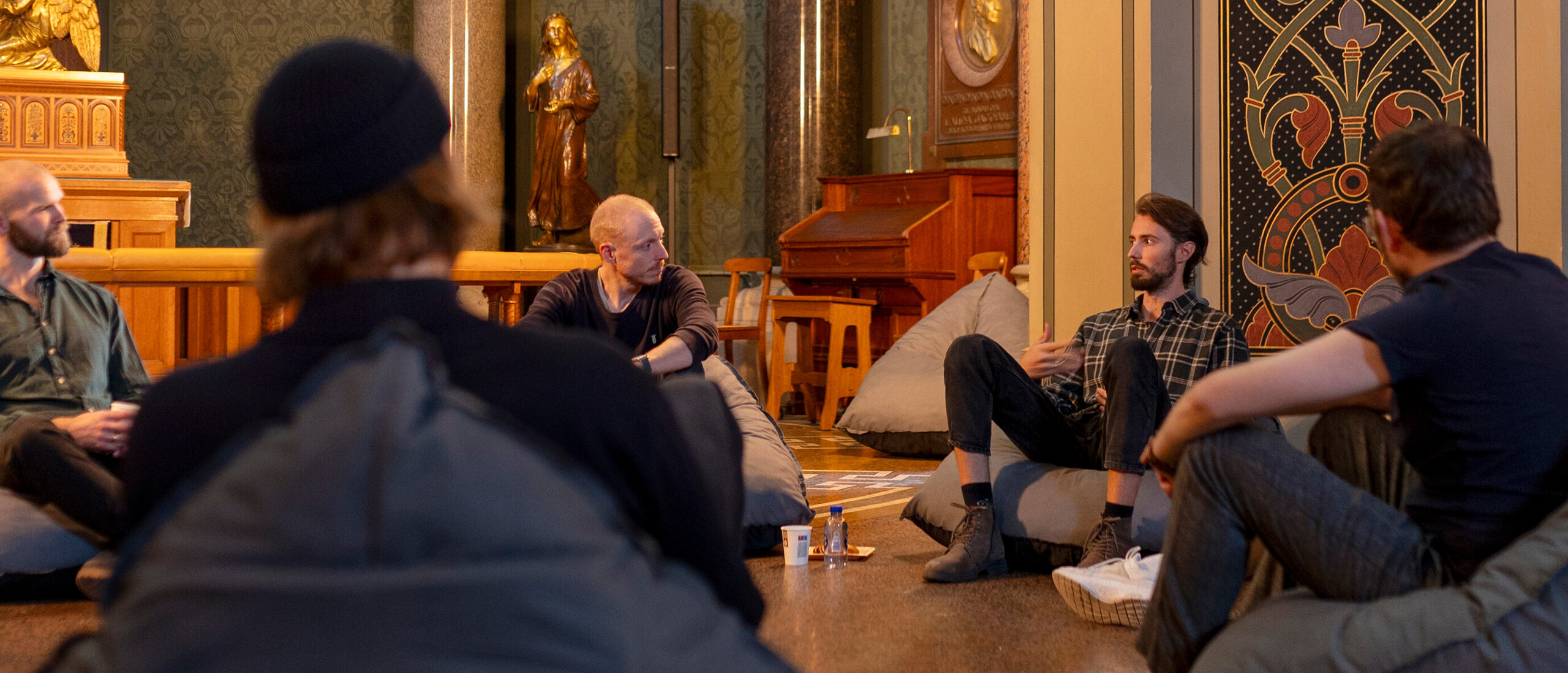 - Faren og fællesskabet er centrale begreber i kristendommen, og derfor er det oplagt, at de her samtaler finder sted i kirkeligt regi. Men kirkerummet er også støttende. Her i Jesuskirken er der en særlig ophøjethed, synes jeg. Rummet er meget atypisk for danske kirker: mørkt og rigt udsmykket. Det bidrager til samtalen med en alvor, som er meget vigtig. Men faktisk er det noget af det blødeste, jeg nogensinde har været med til, uddyber Eskil Zacho Steffensen og refererer til både scones og sækkestole.