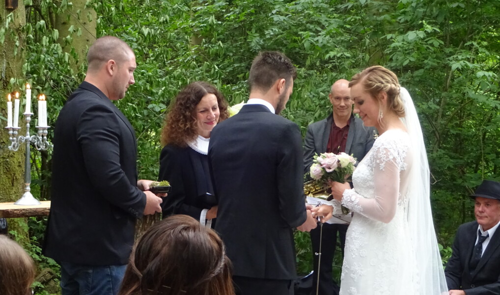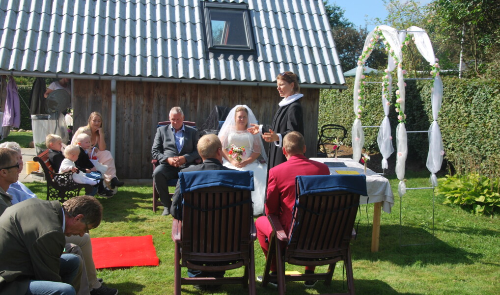 Kenneth og Gitte ønskede sig en udendørsvielse ved et hjemmelavet alter i kolonihaven. Drømmen blev til virkelighed under en strålende septembersol.