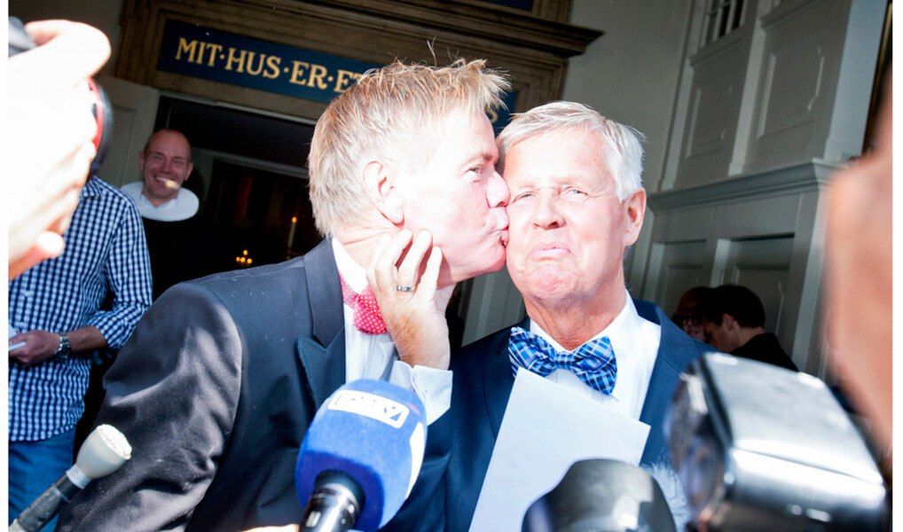 Peter Rothgardt og Peter Borg skyndte sig at aflyse turen på rådhuset, da en ny lovændring gjorde det muligt at blive gift i kirken. 600 mennesker mødte op for at overvære brylluppet.