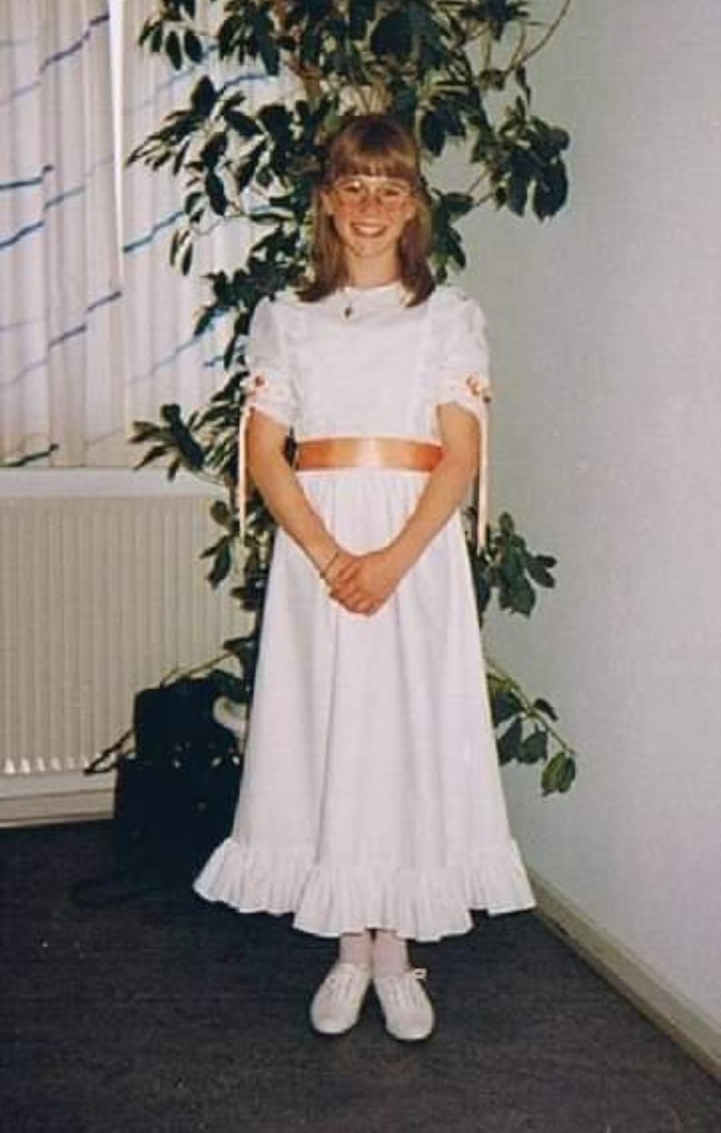 - Min mosters brudekjole blev syet om til konfirmationskjole til min ældste søster i 1986, så havde min anden søster den på i 1988, og så blev det min tur i 1994. Min mor insisterede på, at vi skulle have samme kjole på, og så fik vi lov til selv at vælge farvet silkebånd. Dengang syntes jeg, det var virkelig træls, men i dag elsker jeg hendes beslutning. Det bandt os søstre sammen, og det viste en respekt og en ydmyghed over for de ressourcer, der var at gøre med. Vi havde ikke mange penge, men min mor havde sparet sammen, siden vi blev født. Da min bror blev konfirmeret i 2002 fik han også kjolen på - dog kun kortvarigt til festen efter kirken. Jeg har kjolen hængende og vil da se, om jeg kan overtale min datter til at have den på om syv år.
