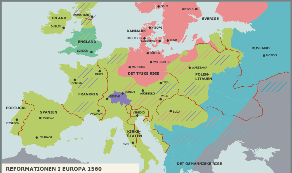 Download Luther-rosen, en tidslinje med Reformationshistorien eller et kort over Europa i 1500-tallet.